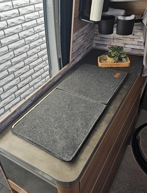Handgefertigte Filzabdeckung für Herd und Spüle, speziell konzipiert für CAN FL 1501. Bitte messen Sie zur Sicherheit selbst nach, da möglicherweise mehrere Modelle kompatibel sind.