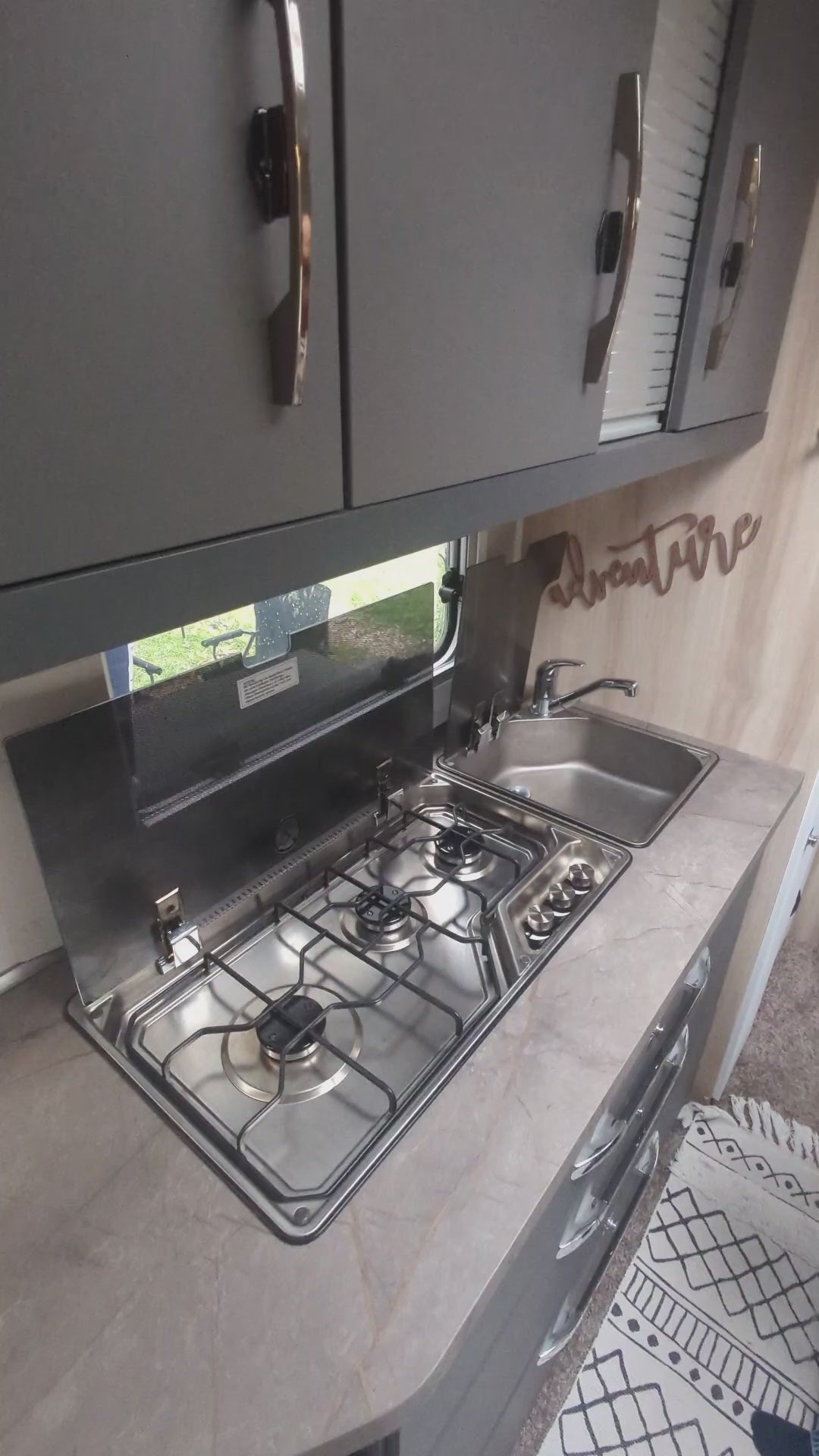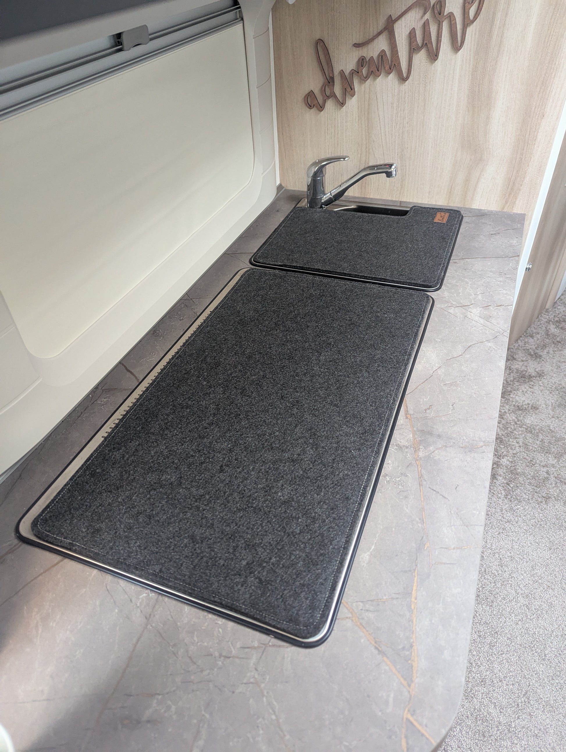 Handgefertigte Filzabdeckung für Herd und Spüle, speziell konzipiert für Hobby und Fendt Wohnwagen ab Baujahr 2023.